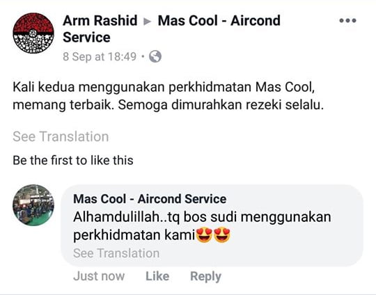 Kali kedua menggunakan perkhidmatan Mas Cool, memang terbaik. Semoga dimurahkan rezeki selalu.