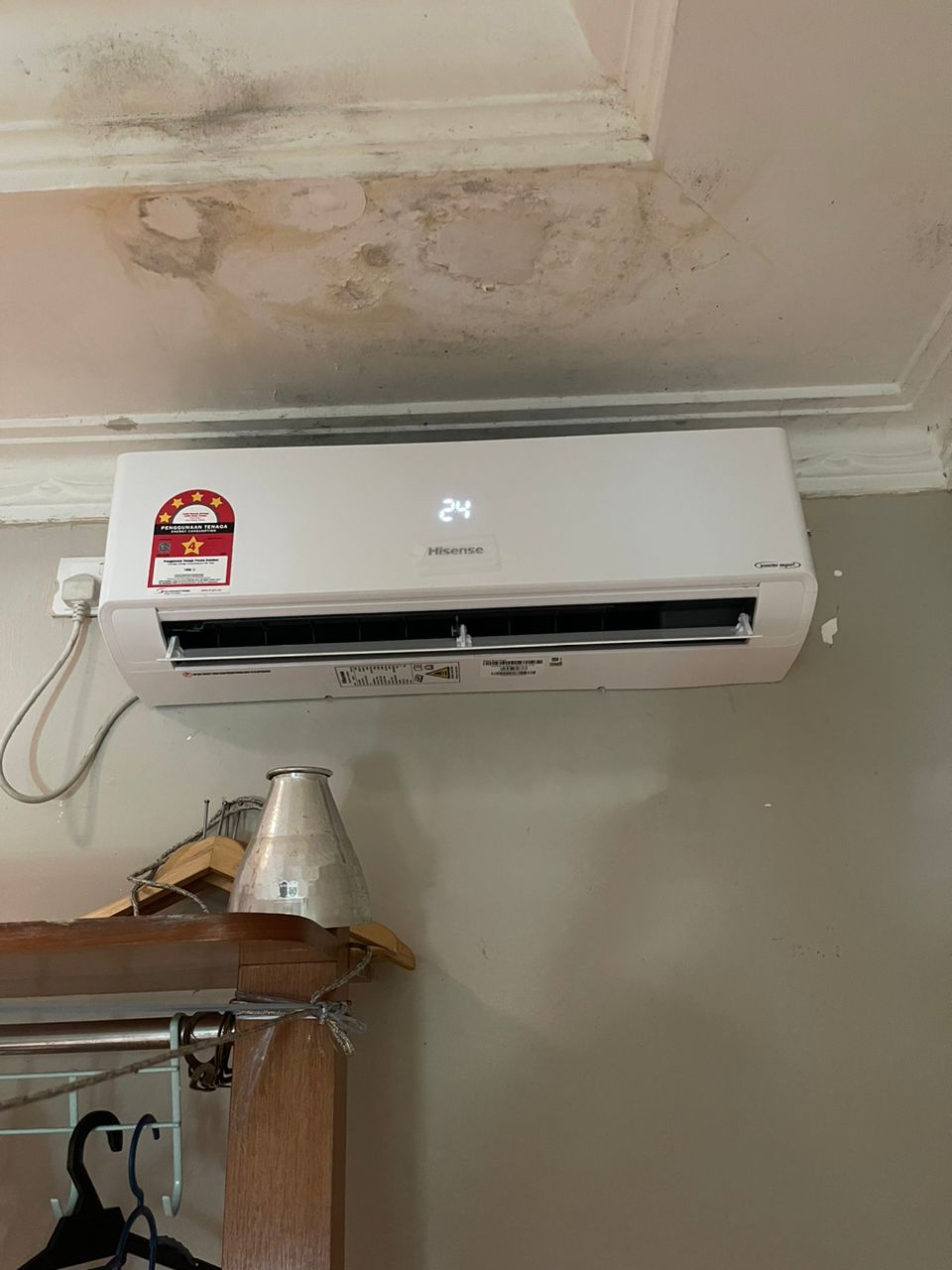 Ini bukanlah masalah utama selagi anda berasa bilik masih sejuk. Air yang menitis adalah dari proses kondensasi yang berlaku di pemeluwap dan ia adalah normal.