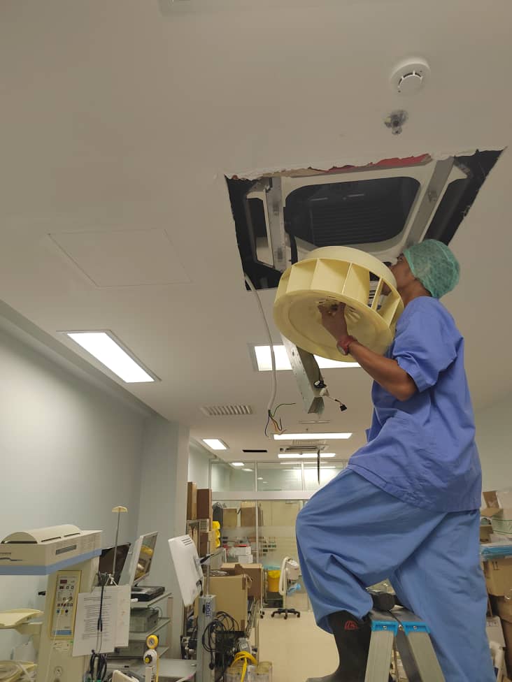 Jika unit langsung tidak beroperasi dan lampu unit dalam tidak menyala setelah di tekan ‘remote’ kemungkinan besar ialah tiada bekalan kuasa atau berlaku trip. Anda perlu “ON” semula fius utama.