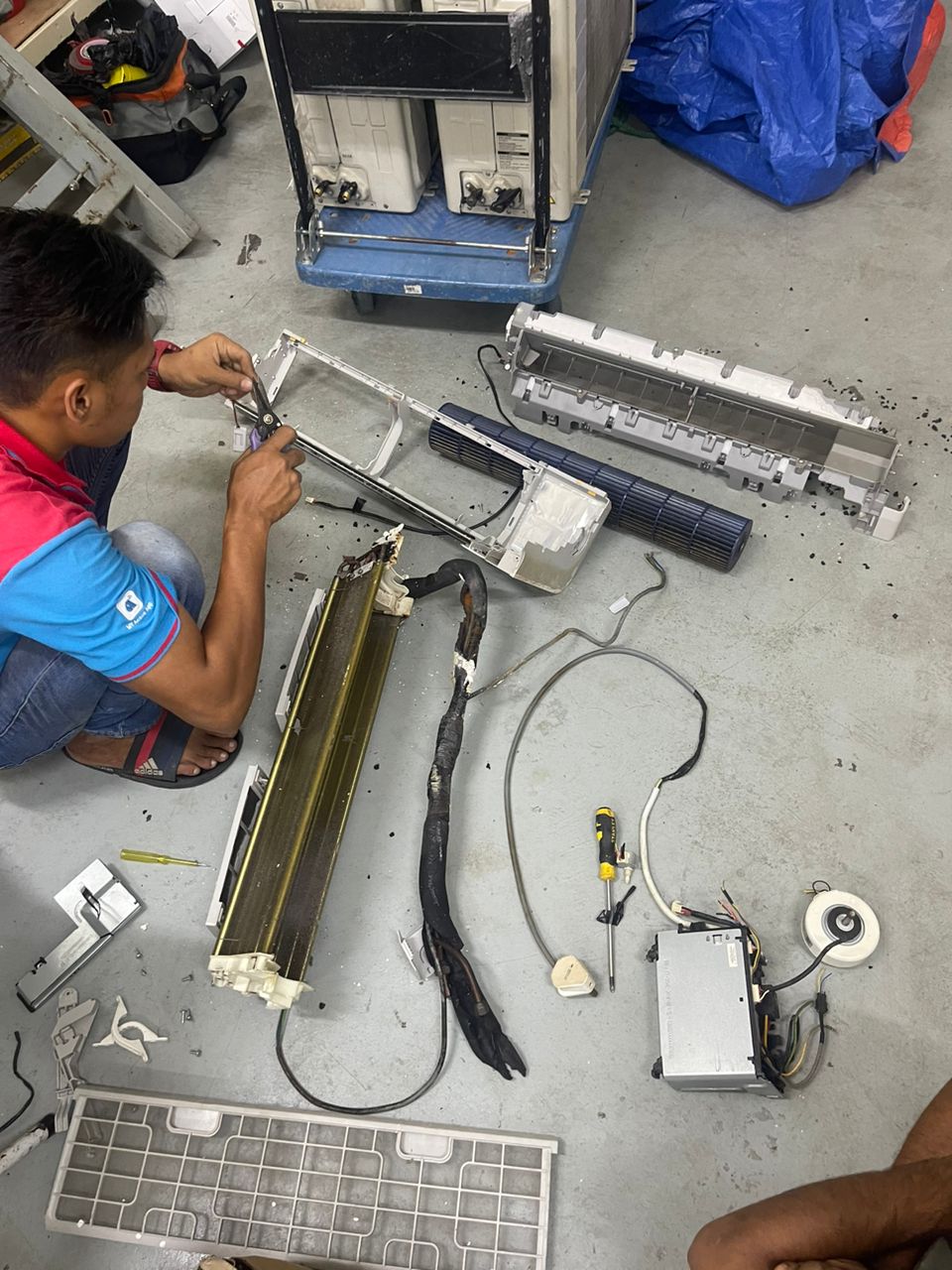 Kadang – kadang masalah ini juga berpunca dari kipas dalam (blower) yang tidak berpusing. Oleh itu anda dinasihati untuk set pada remote control blower speed kepada maksimum dan pilih mood cool. Jika masih ada masalah electronic board pada indoor perlu diperiksa.